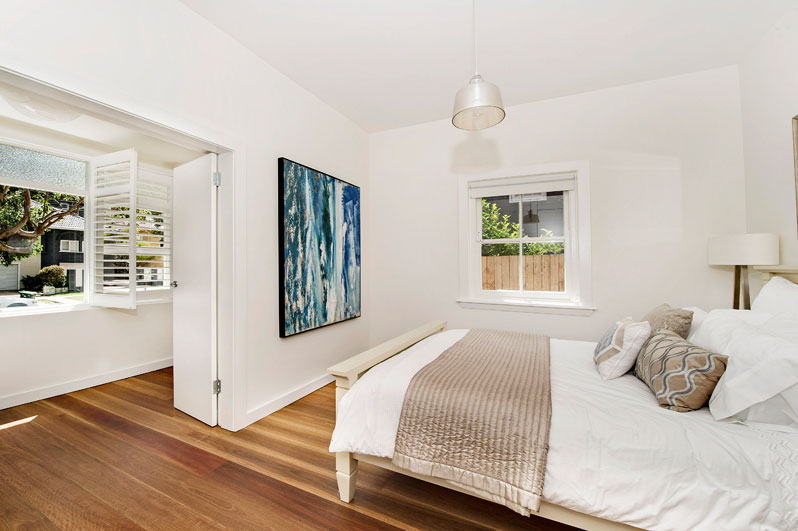- Two double bedrooms, master has built-ins + sunroom