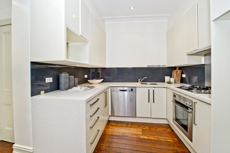 - Sleek Caesarstone gas kitchen, stainless steel appliances