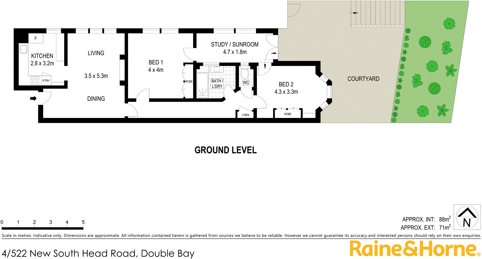 Nestled in this prized Double Bay location, just a short level stroll to Double Bay's cosmopolitan shopping, dining and entertainment, this garden oasis situated on the lower level of an art deco security block features 2 generous sized bedrooms (BIR) plus a separate study/sunroom.