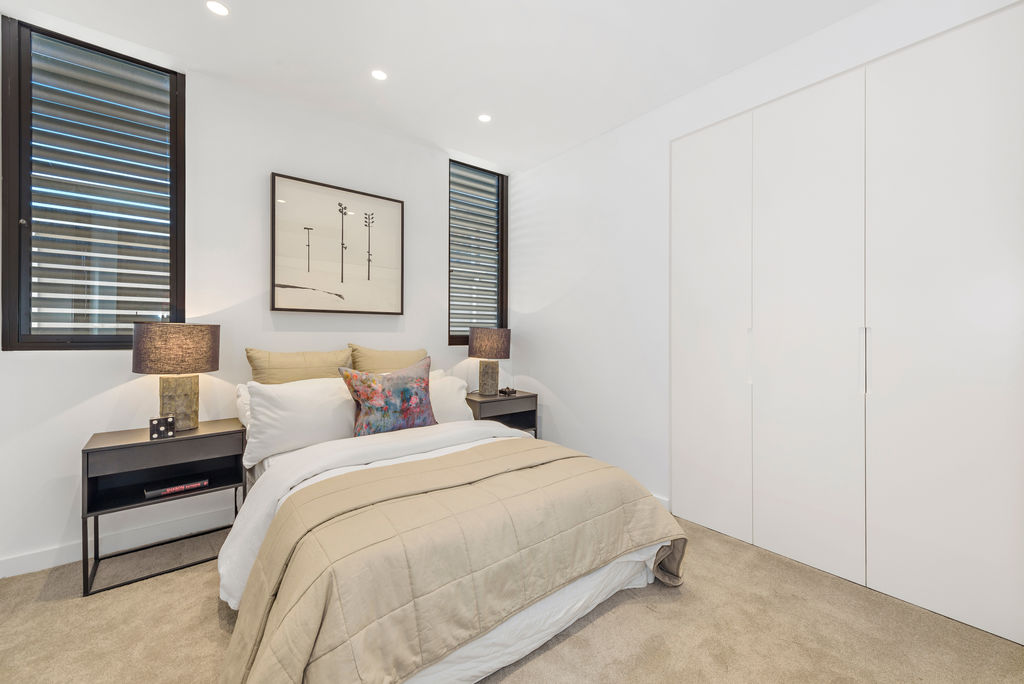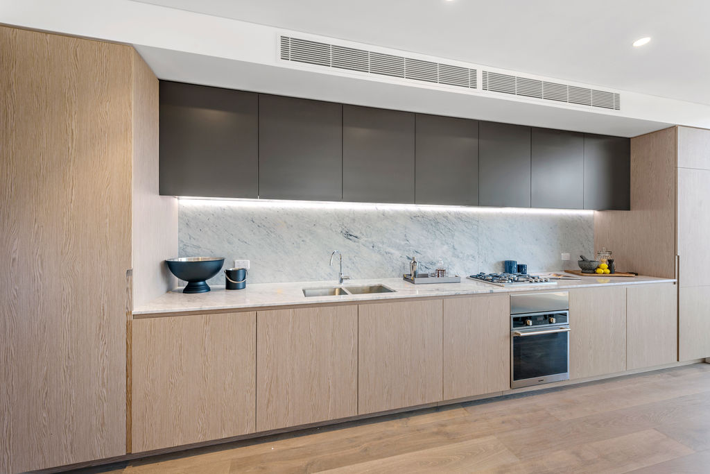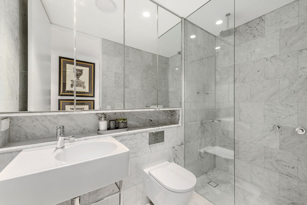 Design excellence and custom finishes are the hallmarks of the stunning sub- penthouse featuring entertaining terrace, open-plan living and dining areas, gourmet marble gas kitchen (w island bench), main bedroom with ensuite and built-ins. 1 more double bedroom w b/ins Carrara marble bathroom, concealed laundry. European oak floors, ducted zoned r/c air-con, video intercom, alarm, level lift access to 1 car space and storeroom in the secure basement parking area.