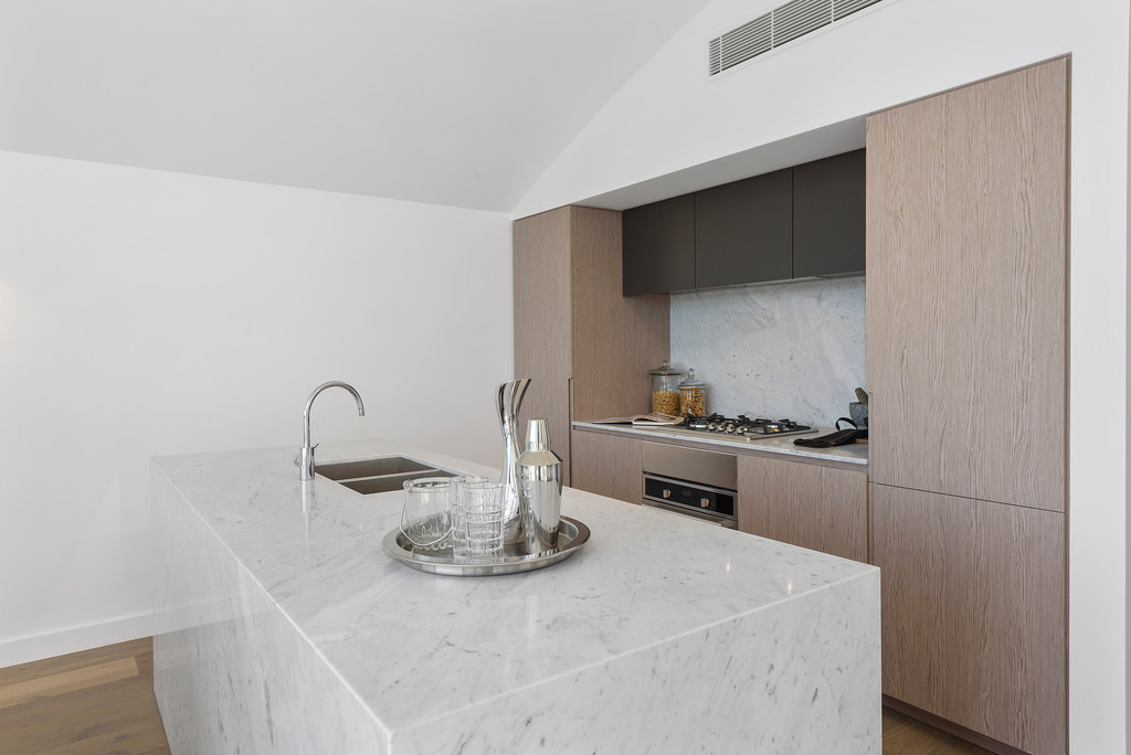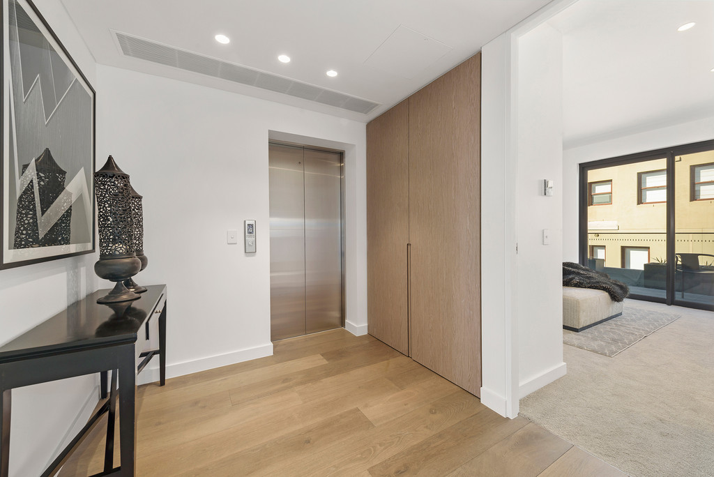 Design excellence and custom finishes are the hallmarks of the XXX sqm penthouse featuring spacious alfresco entertaining terrace, open-plan living and dining areas, gourmet marble gas kitchen (w island bench), main king-size bedroom (w dressing room, ensuite, balcony), 2 more double bedrooms (both w b/ins and balcony), 2 Carrara marble bathrooms, concealed laundry, wide foyer (w direct lift access), European oak floors, ducted zoned r/c air-con, video intercom, alarm, level lift access to 2 car spaces and storeroom in the secure basement parking area.
