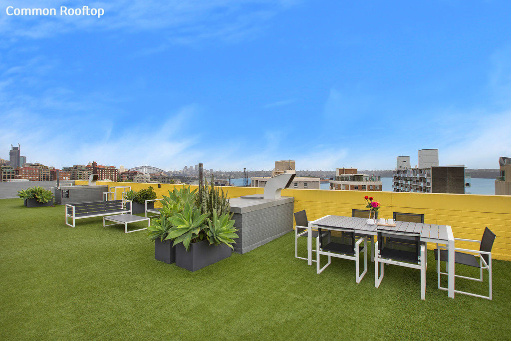 A sleek renovation has transformed this mid-century 49sqm (approx) studio into a stylish urban retreat in The Loop, an exclusive harbour enclave nestled above picturesque Beare Park. Set to the rear of the recently revived International Lodge, a modernist landmark designed by Harry Seidler in 1962, the light-filled studio is secluded from the road offering an uplifting sense of peace and privacy just 500m to the buzz of Macleay Street's fashionable village hub. Enjoy the vista from the private terrace, relax by the pool or soak up the breathtaking views over the city's harbour icons from what is undoubtedly one of Sydney's most spectacular common rooftop gardens.