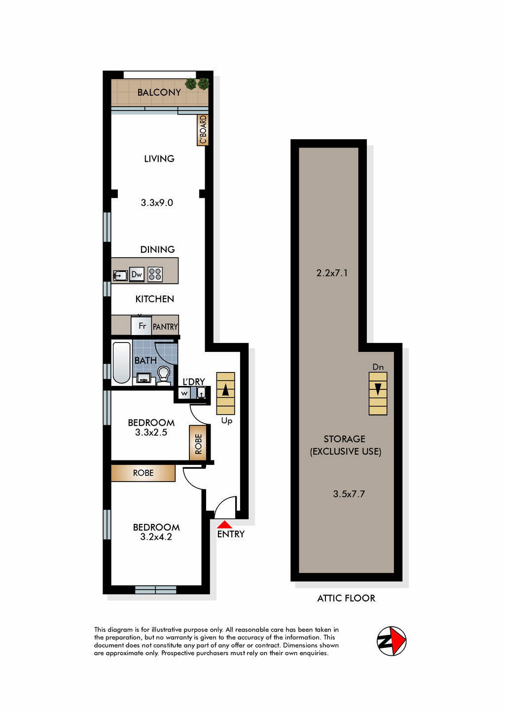 With stunning Sydney Harbour Bridge and Harbour views, this modern top floor 2 bedroom apartment with large exclusive use attic space and level private access is beautifully renovated. The contemporary kitchen with dishwasher, plenty of cupboard space and induction stovetop flawlessly built into a ceaser stone bench top with breakfast bar, connects to open plan living and dining flowing to a serene and quiet balcony, framing the amazing view. Watch the sunlight glint off the water and picture how amazing it would be to wake up to this view every day. Featuring a luxurious bathroom with bath and shower and heated towel rail, zoned and ducted air-conditioning, large master bedroom with built ins and private leafy outlook. Dual action double glazing windows throughout. Ceiling fans in the bedrooms, concealed internal laundry, private secure level entry. Take advantage of creating further living space in the attic (STCA and strata approval). Evening viewings available upon request.