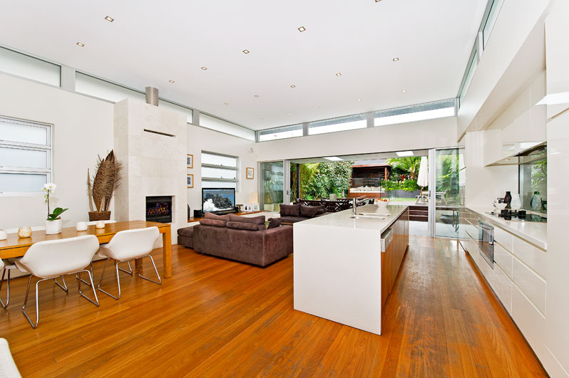 - Large areas of glass, high ceilings, polished timber floors, full security