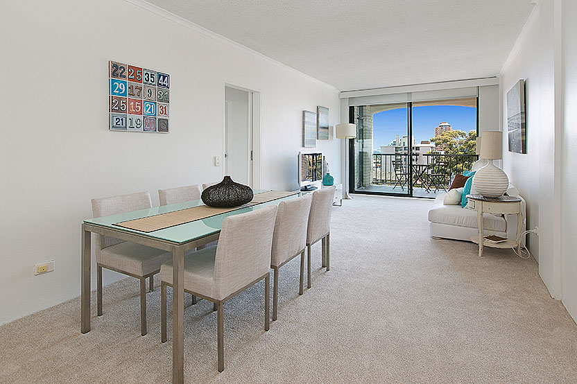 Featuring level lift access from a modern security foyer, this stylish apartment boasts freshly painted interiors, new carpeting, kitchen flooring and window finishes creating an elegant living environment. Accommodations enjoys 2 bedrooms (main with built-ins and balcony access), contemporary bathroom (with bath), galley-style granite kitchen (with integrated appliances and dishwasher) with fluid open plan living and dining space flowing directly to covered sunny balcony. Additional attributes include separate internal laundry, lock up storage cage and remote lock up garage.